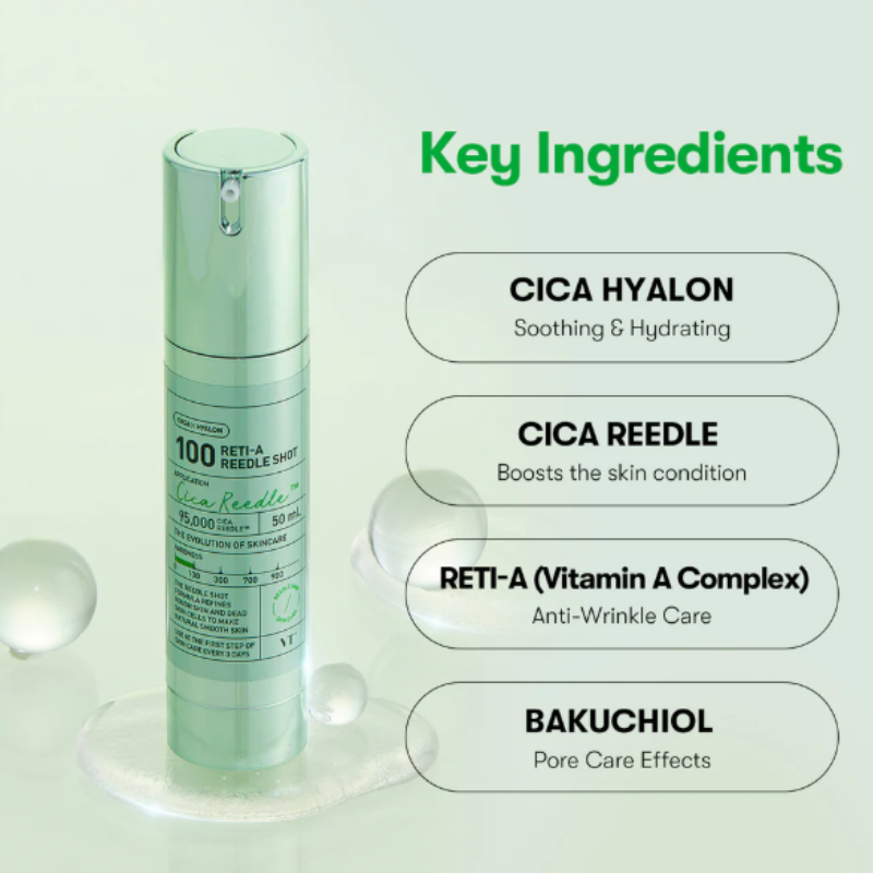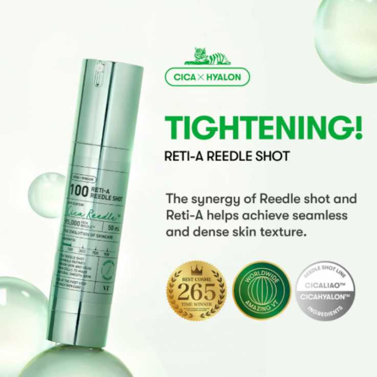 Description Reti-A Reedle Shot 100 which is the main product of Reti-A line, this serum is infused with Cicahyalon™ provides synergistic pore care effetcs. Reti-A Reedle Shot has pore care effect which minizies enlarged pores, clarifies and soothes skin, refines skin texture improves skin textu ...Read more