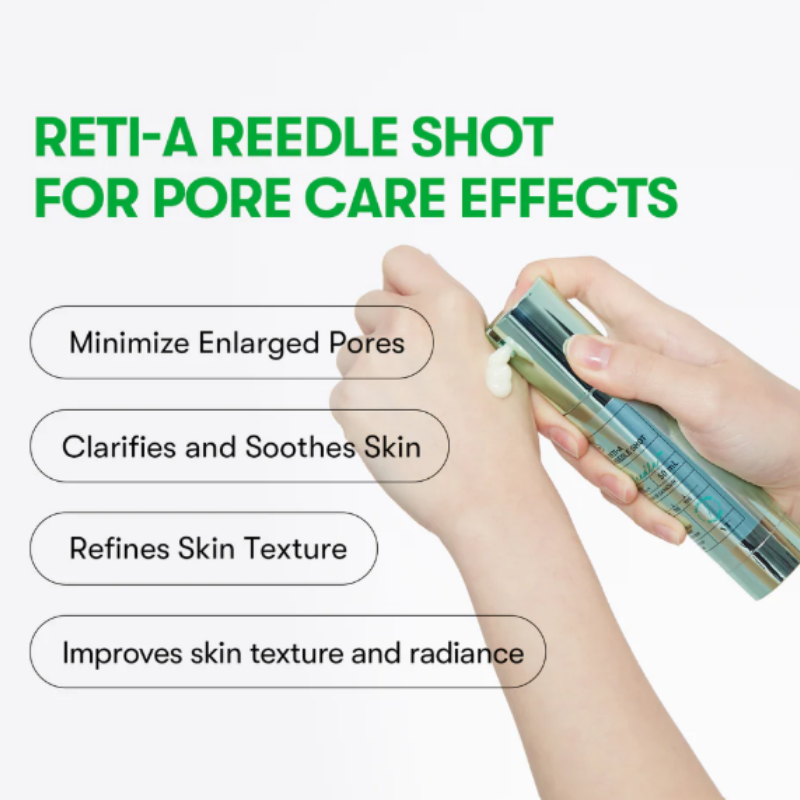 Reti-A Reedle Shot has pore care effect which minizies enlarged pores, clarifies and soothes skin, refines skin texture improves skin texture and radiance.
